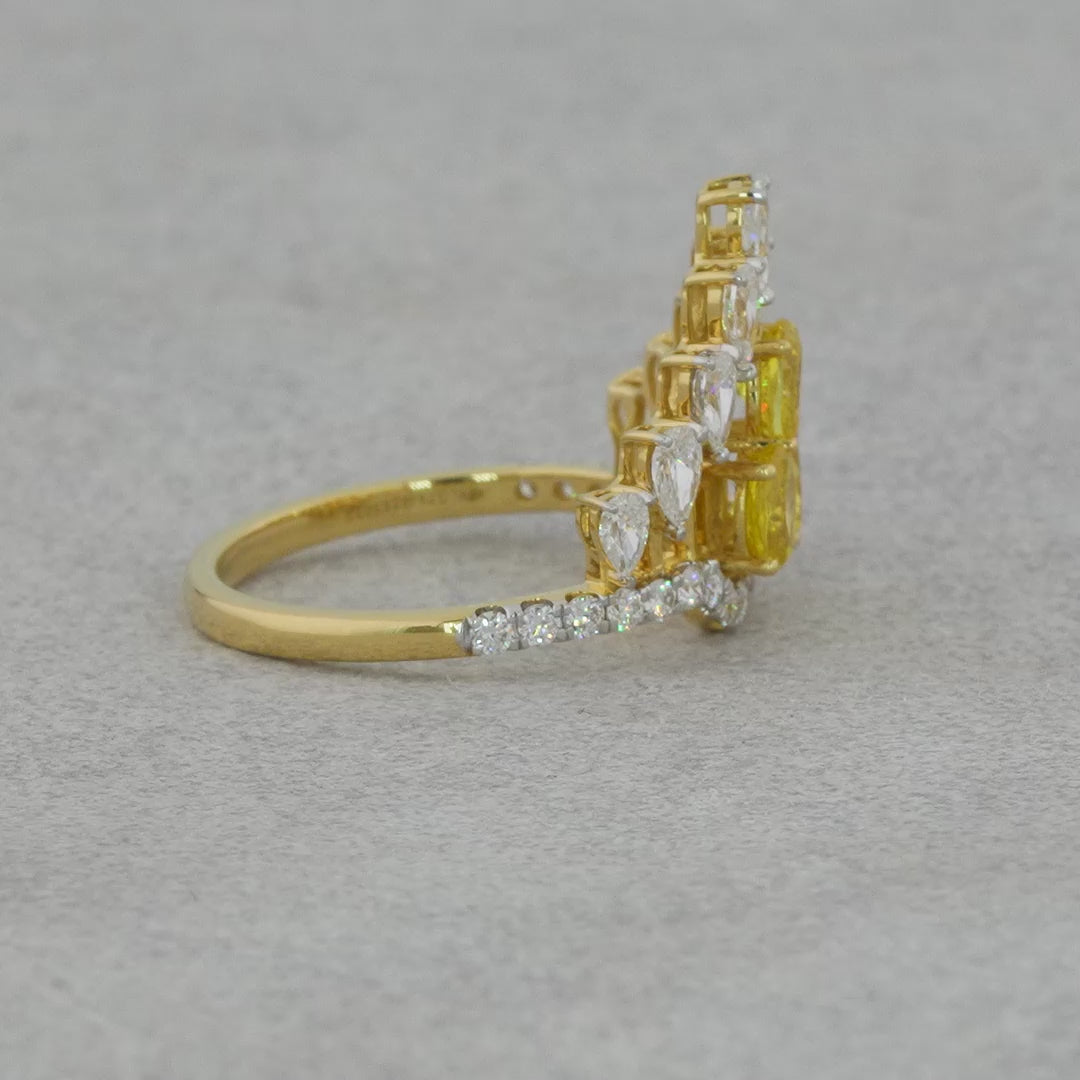 Purecarat Yellow Gold Crown Ring with Oval Yellow Diamonds
